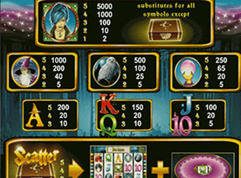 Слот-машина отличается высоким качеством исполнения. Она проста в настройках и щедра на выплаты. Проверить диапазон возможных наград эмулятор позволит в режиме демо, который позволяет каждому гостю казино играть бесплатно. Максимальный выигрыш игрокам предоставит молодая ведьма. Именно эта героиня виртуальной истории будет выдавать игрокам до 5 000 монет. Азартные игры также предусматривают наличие в символьном ряду картинок с изображением совы, хрустального шара и магической шкатулки. Последний знак выступает в игре в роли символа Разброса, способного запускать призовые раунды. К наиболее значимым техническим характеристикам магического видеослота также стоит отнести следующие: