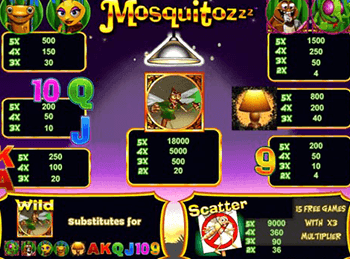 Mosquitozzz – игровой аппарат от Novomatic, рассказывающий о жизни виртуальных насекомых. Аппарат предлагает посетителям игорного заведения отправиться на лесную поляну и познакомиться с самыми маленькими жителями зеленой чащи. Ведь жуки и бабочки, комары и стрекозы стали главными героями slot, принимая активное участие в раздаче золотых монет. Основным персонажем, которому симулятор доверил раздачу джек-пота, выступает москит. Именно это маленькое жужжащее насекомое порадует гостей казино, решивших играть на деньги в игровой автомат, выплатами до 9 000 кредитов. Проверить, какие дополнительные награды эмулятор предлагает любителям азарта, очень просто в режиме демо.