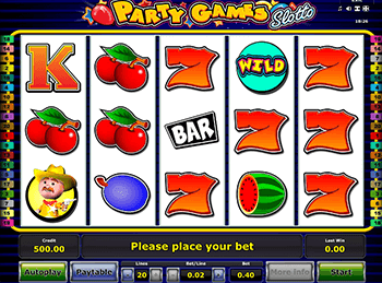 Party Games Slotto – игровой автомат от Novomatic, рассказывающий о приключениях опытного шерифа, можно будет играть бесплатно даже без наличия по близости сети Интернет. Оригинальные азартные игры познакомят новичков мира гэмблинга с забавным представителем правопорядка, который не привык сидеть на одном месте и с удовольствием гоняется за преступниками, позабыв об инстинкте самосохранения. С помощью шерифа игровой аппарат предлагает игрокам запустить новые бонусные раунды и испытать удачу в дополнительной игре.